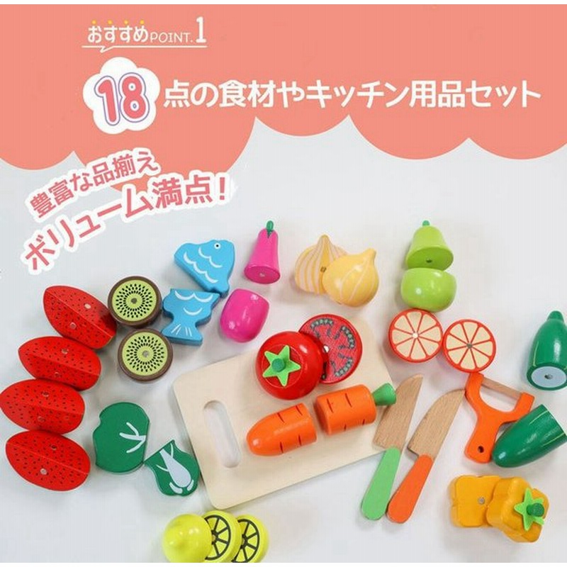 ままごとセット 木製 ままごと 18点 セット 木のおもちゃ 食材 野菜 やさい 魚 フルーツ マグネット式 切れる おままごと 食品衛生法検査済 子供 幼児 知育玩具 ラッシュモール 通販 Paypayモール
